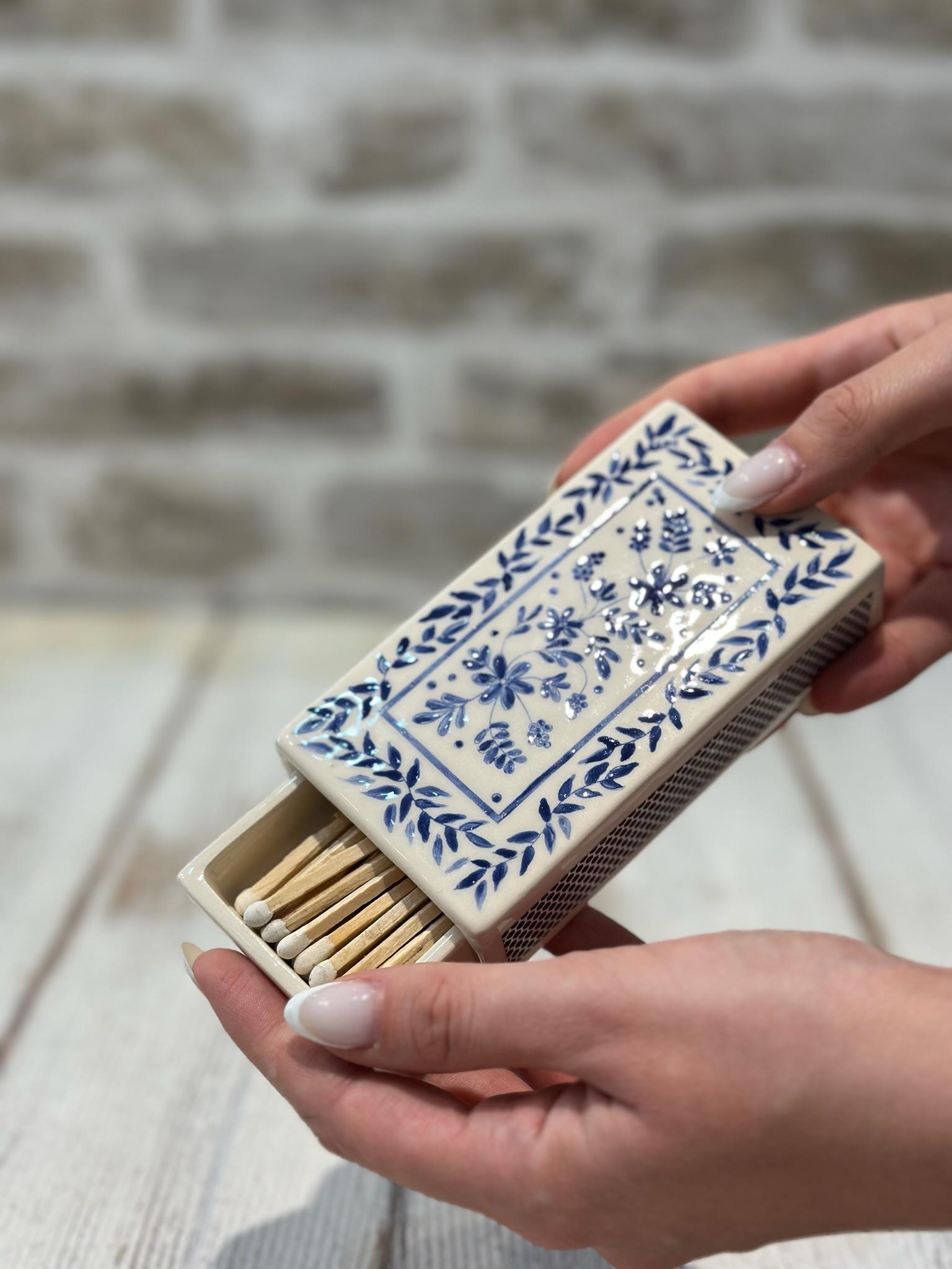 El işçiğiyle üretilen bu seramik kibrit kutusu, zamansız şıklığı ve işlevselliği bir araya getiriyor. Her bir parça, özenle şekillendirilmiş ve zarif desenlerle el boyamasıyla tamamlanmıştır. Hem dekoratif bir obje hem de kullanışlı bir aksesuar olarak yaşam alanınıza estetik bir dokunuş katar.