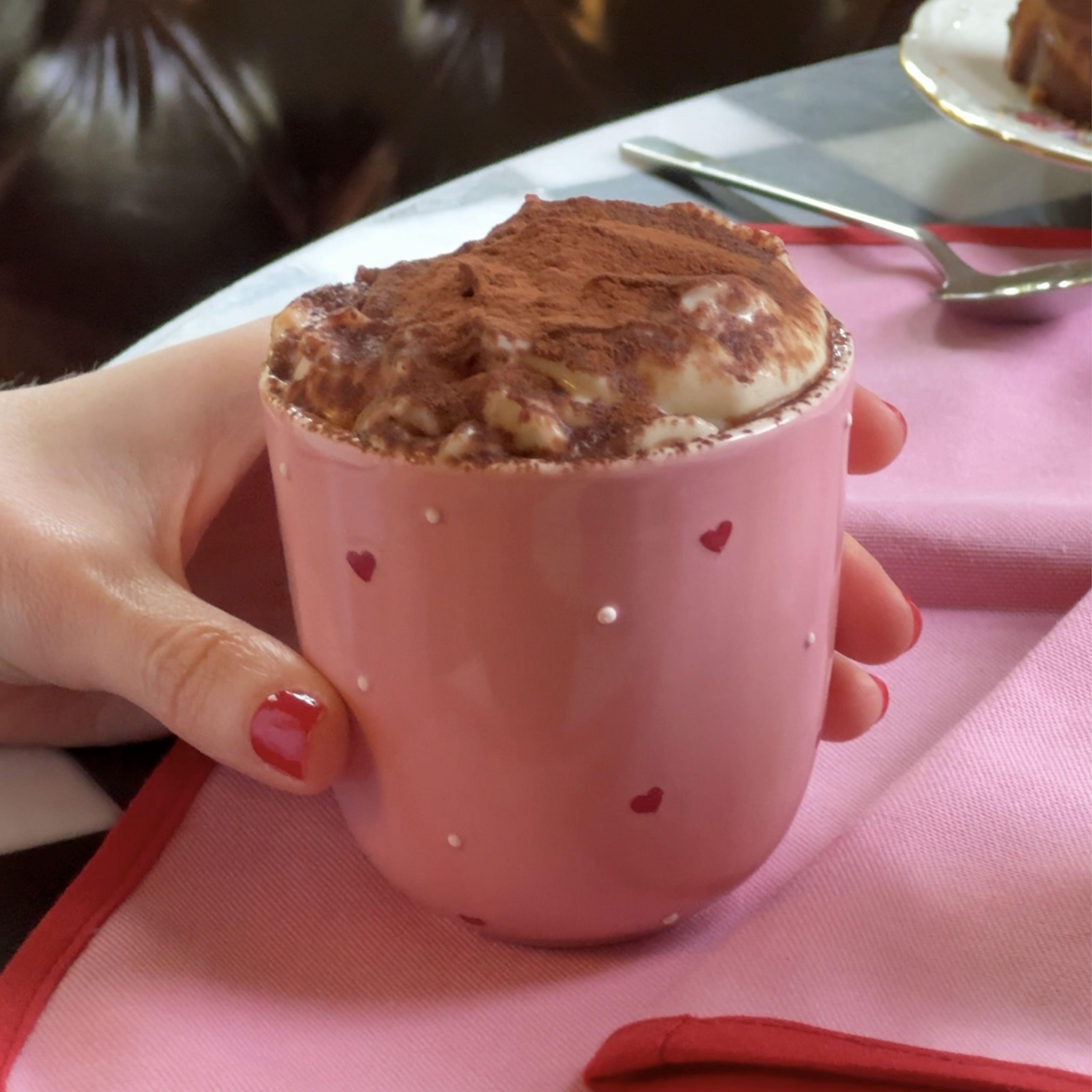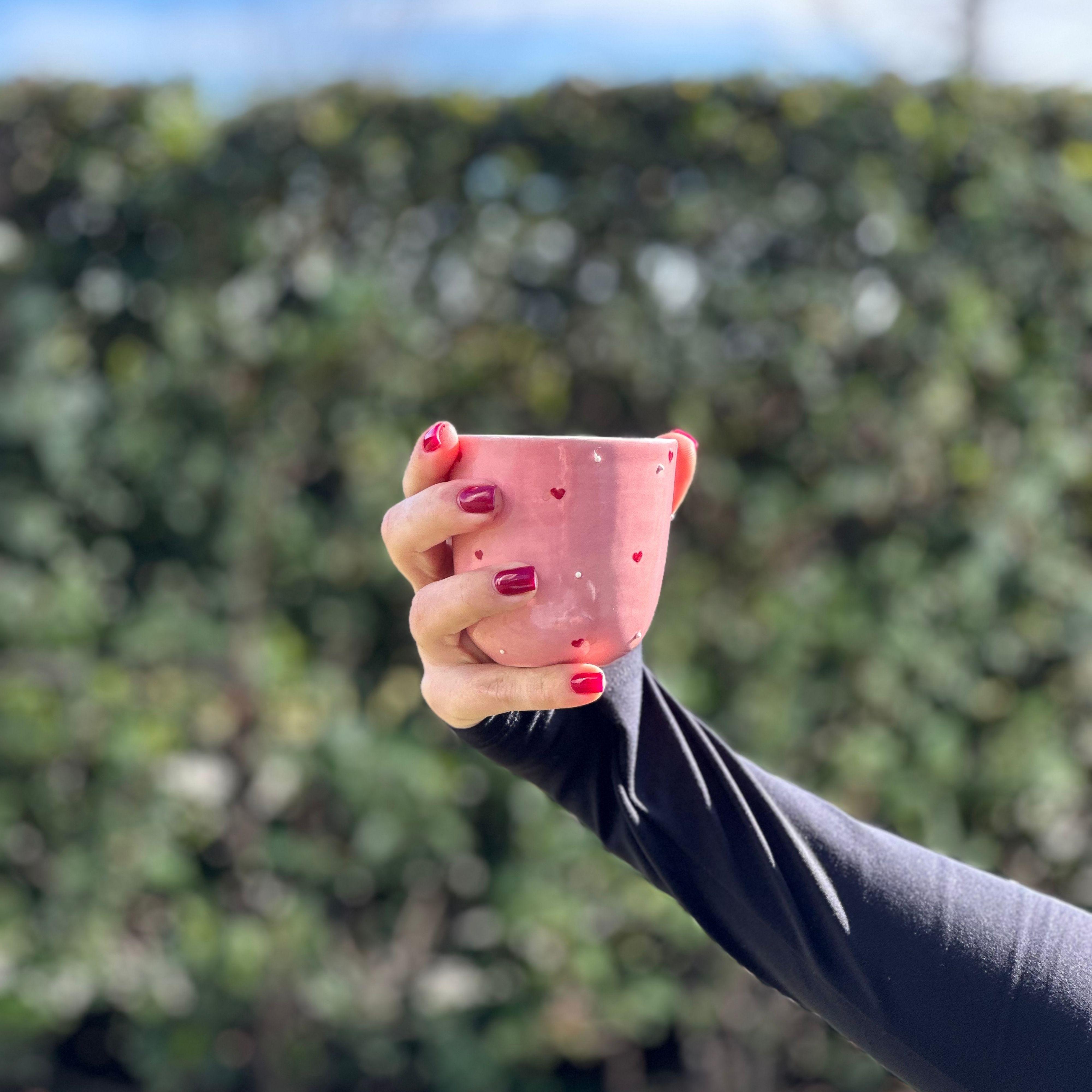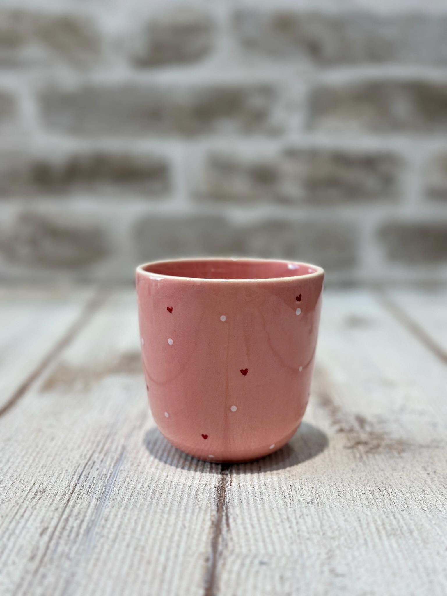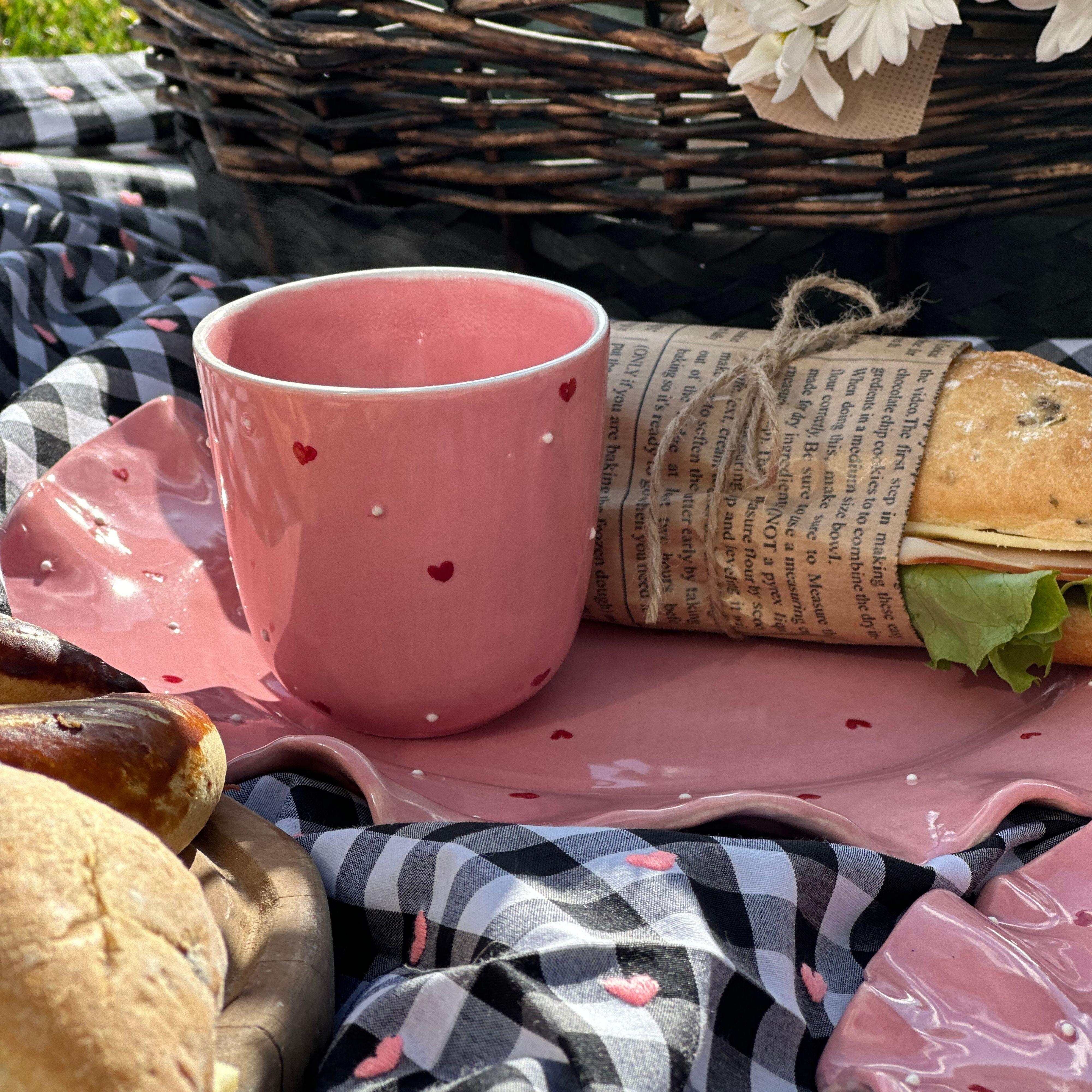 Renk: Pembe üzerine kırmızı kalp ve beyaz noktalar