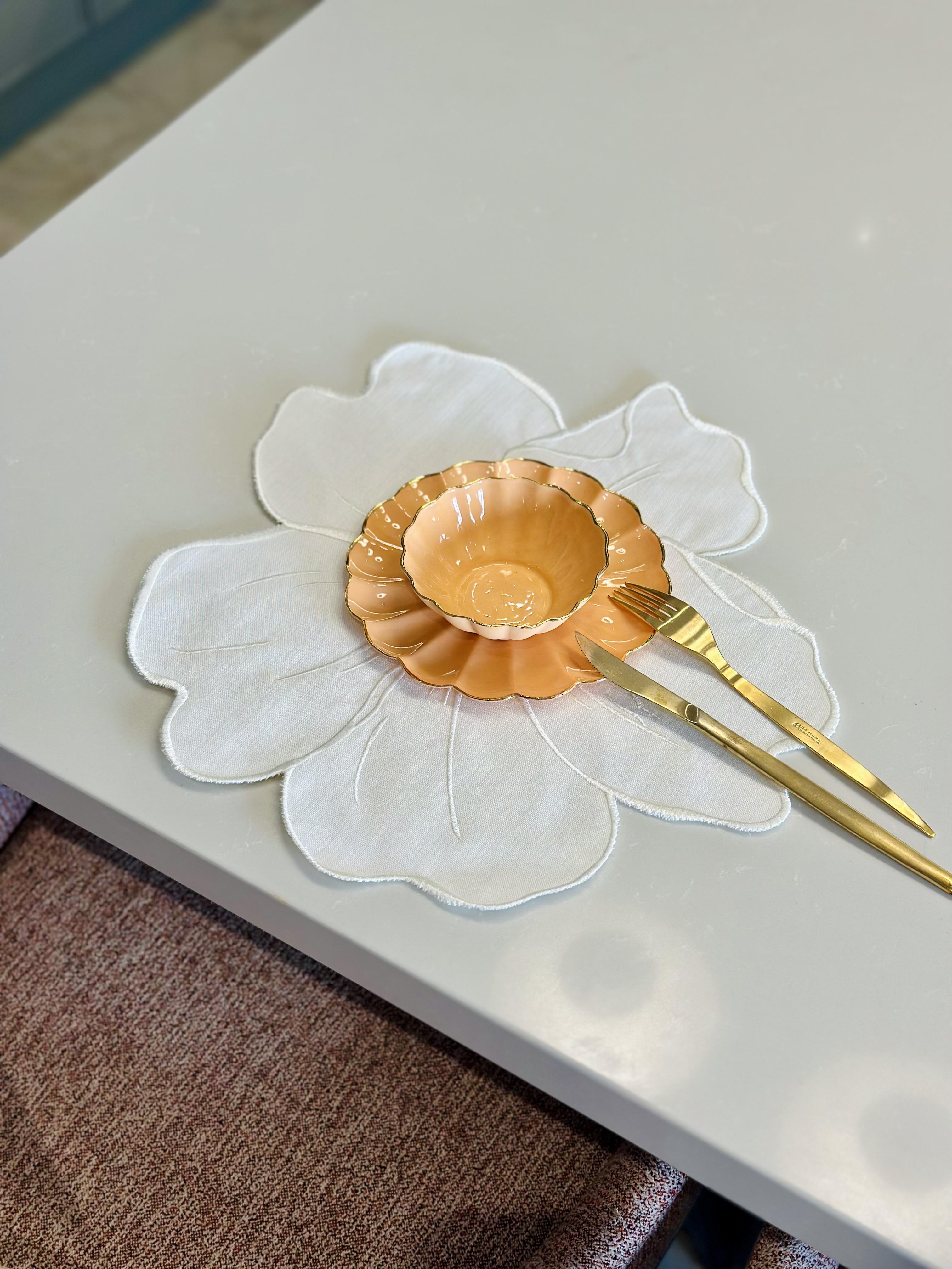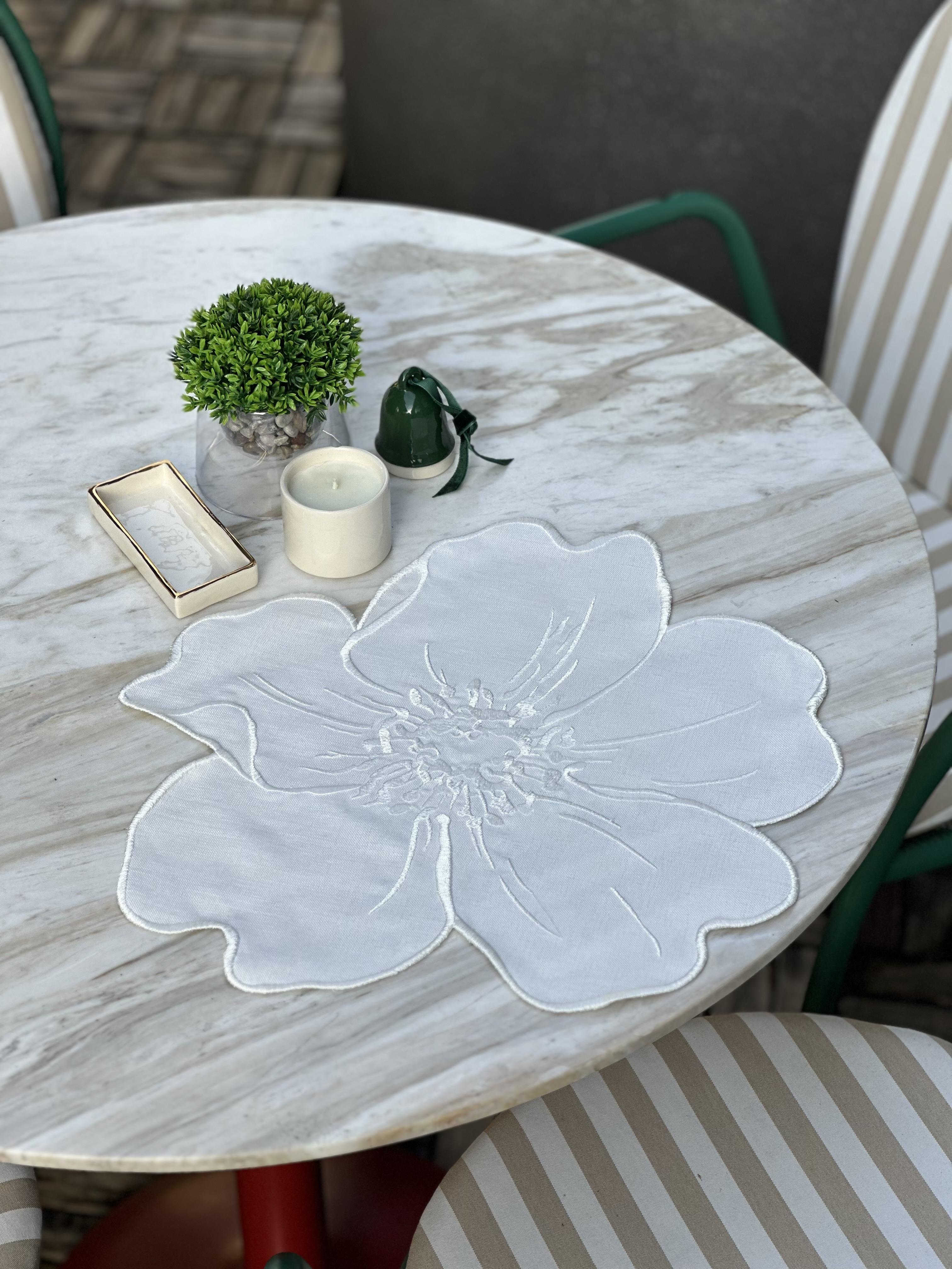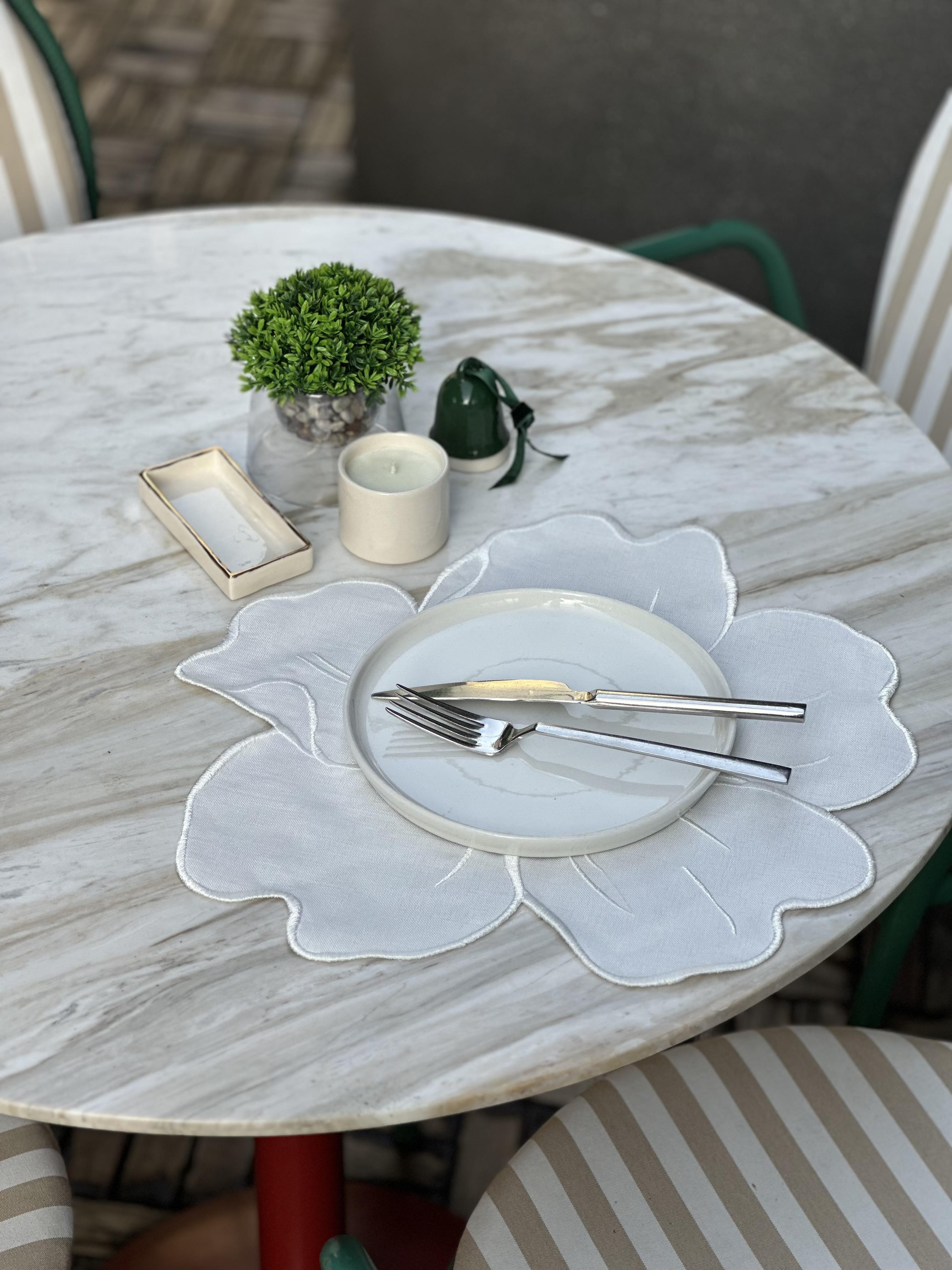 Çiçek formundan ilham alan Pearl Petals, zarif nakış dokusu ve yumuşak hatlarıyla sofraya incelikli bir dokunuş katar. Ton-sur-ton detayları, sadeliğin içinde sessiz bir derinlik yaratır.